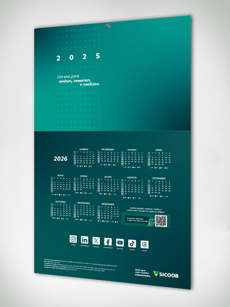 CALENDÁRIO DE MESA SICOOB 2026 COM MARCA ENDOSSADA